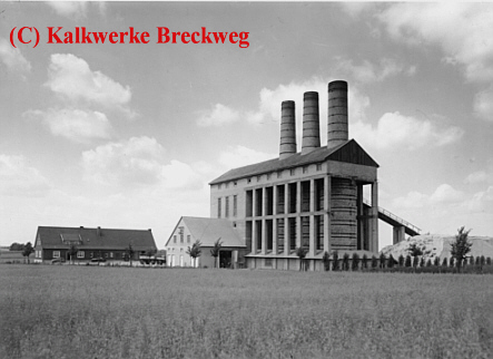 Das Bild zeigt das 1948 gebaute Kalkwerk Breckweg an der Neuenkirchener Straße und wurde etwa 1954 aufgenommen.