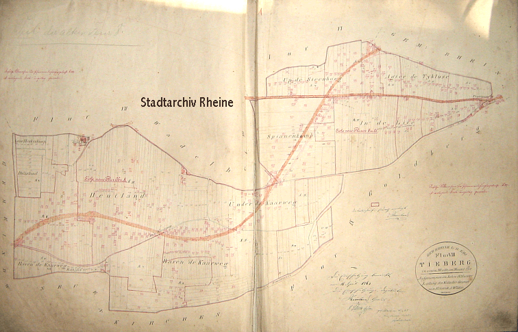 Flurkarte vom Thieberg, von 1865. Mit Genehmigung zur Abbildung, durch das Stadtarchiv Rheine.